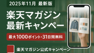 楽天マガジン 【2025年11月】楽天マガジン 最新キャンペーンまとめ 【2025年11月最新】楽天マガジンのキャンペーン情報を徹底解説!初回入会者向けの年額990円キャンペーン、利用者限定ポイント還元、楽天モバイル連携特典などをを網羅。再開時期の予測やよくある質問も掲載。最新のお得プランを見逃さないガイド。 楽天マガジン